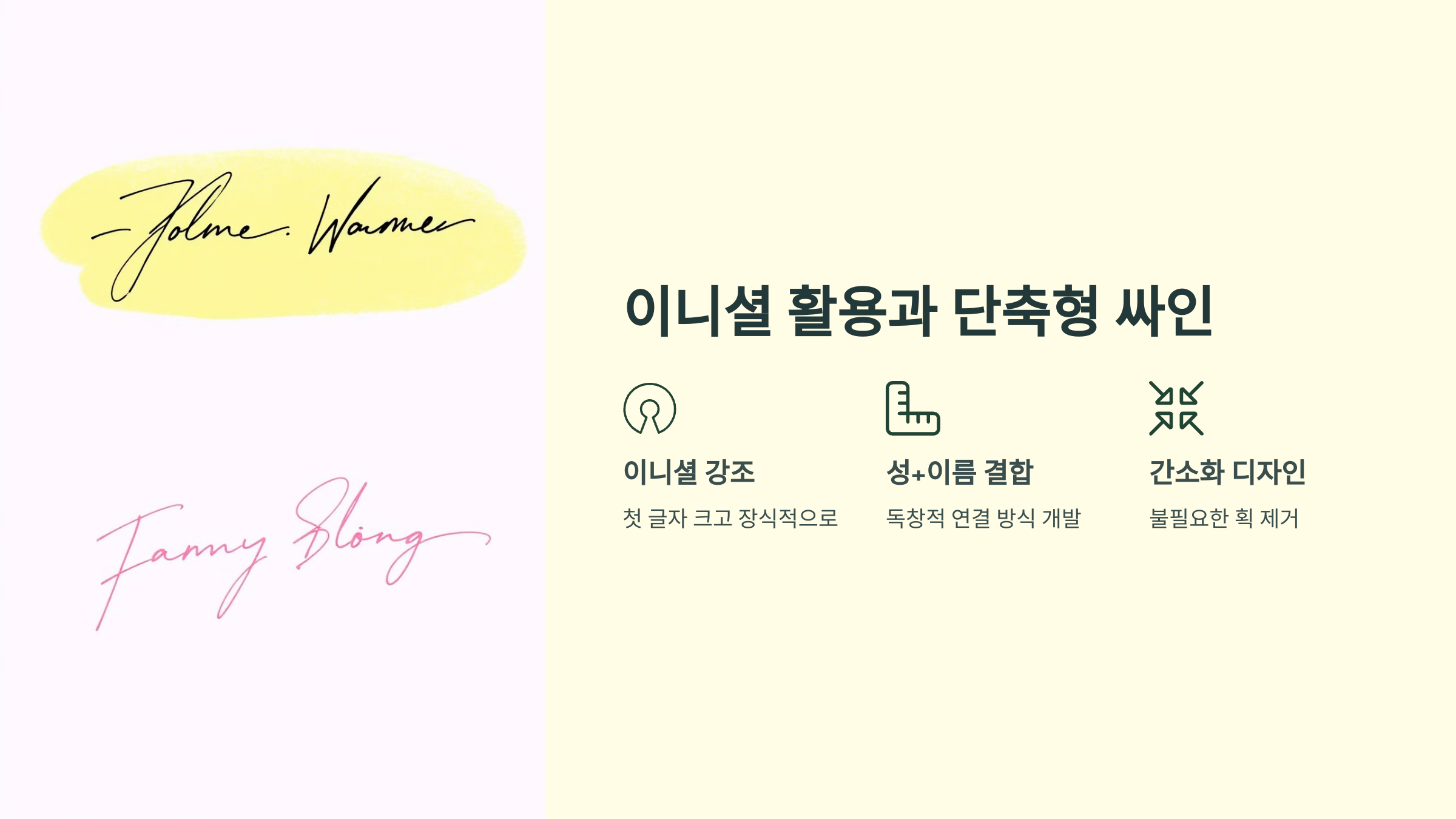 📌 이니셜 활용 및 단축형 싸인 스타일 ✅