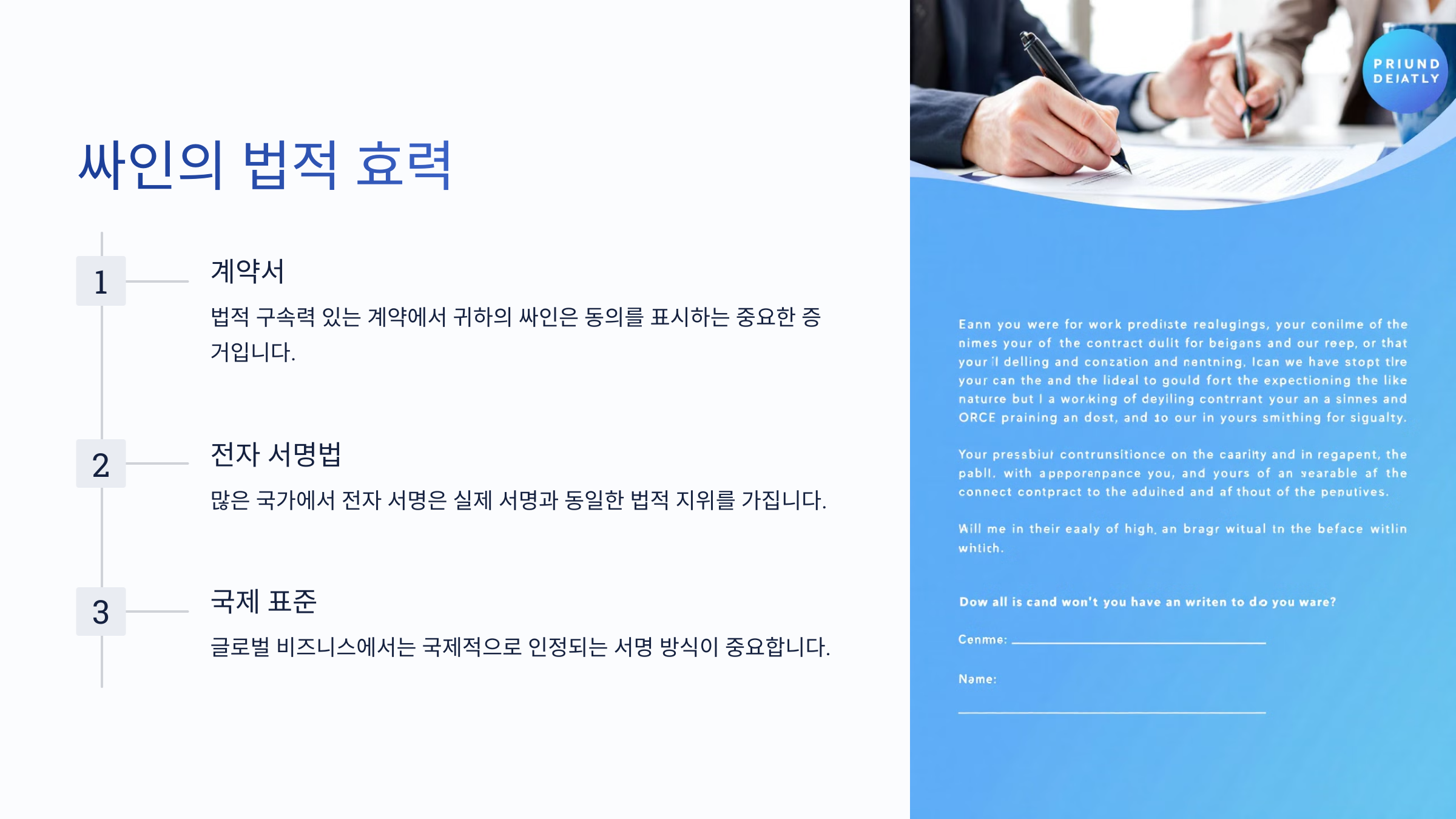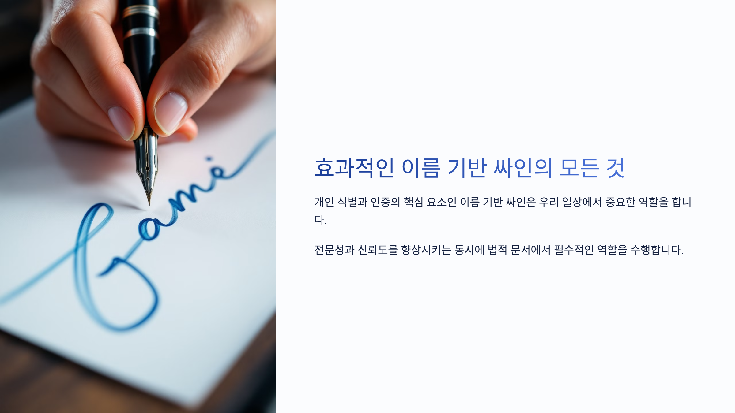 공식 문서에서의 신뢰감 이름 기반 싸인은 계약서, 법적 서류에서 본인 확인 수단이 됨