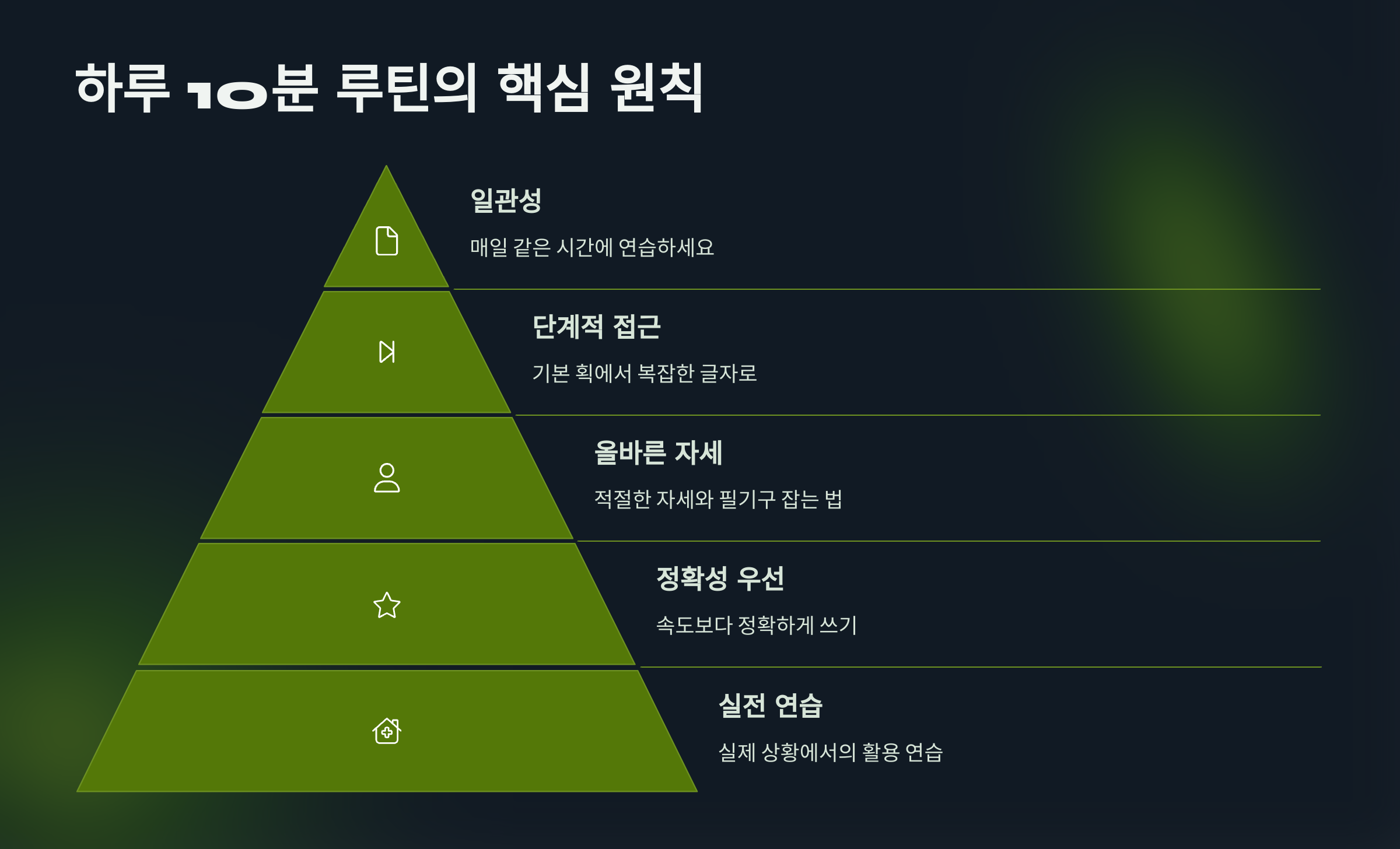 하루 10분 루틴의 핵심 원칙 글씨 교정에 필요한 시간은 사실 생각보다 짧아요. 하루에 단 10분만 투자해도 손의 움직임과 근육 기억을 충분히 자극할 수 있답니다. 중요한 건 그 시간을 얼마나 ‘집중해서’ 사용하느냐에 달려 있어요.