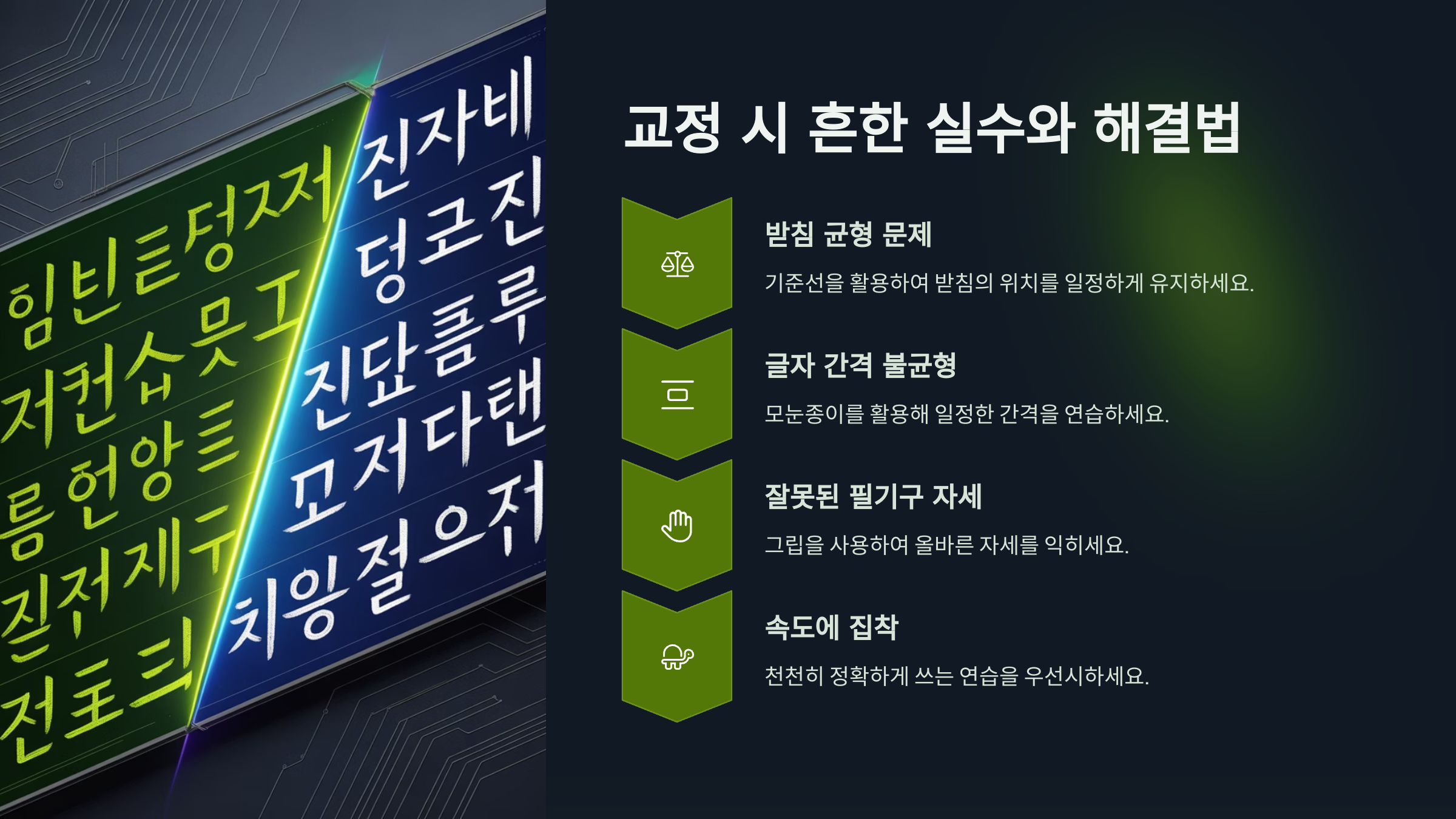 그럼, 다음 섹션에서는 글씨를 교정하면서 흔히 저지르는 실수와 그 해결법을 알려드릴게요! 실수도 과정의 일부니까 걱정 말고 함께 살펴봐요 🔍