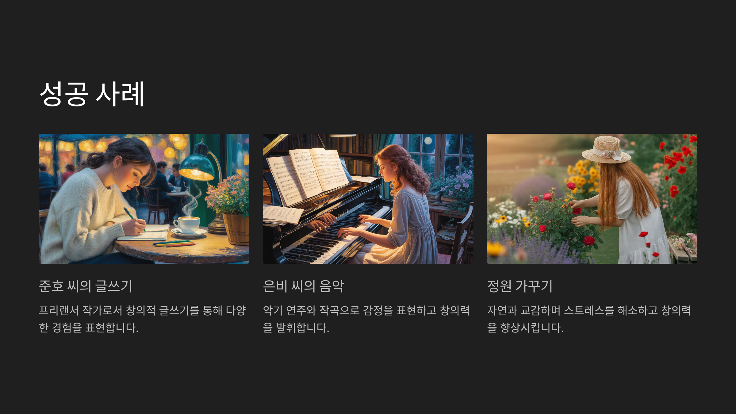 글씨를 쓰는 과정에서 호흡이 느려지고, 몸의 긴장도 풀리면서 자연스럽게 심신이 안정돼요. 하루 중에 마음을 비우는 시간이 생기니까 삶의 균형도 맞춰지는 느낌이에요.