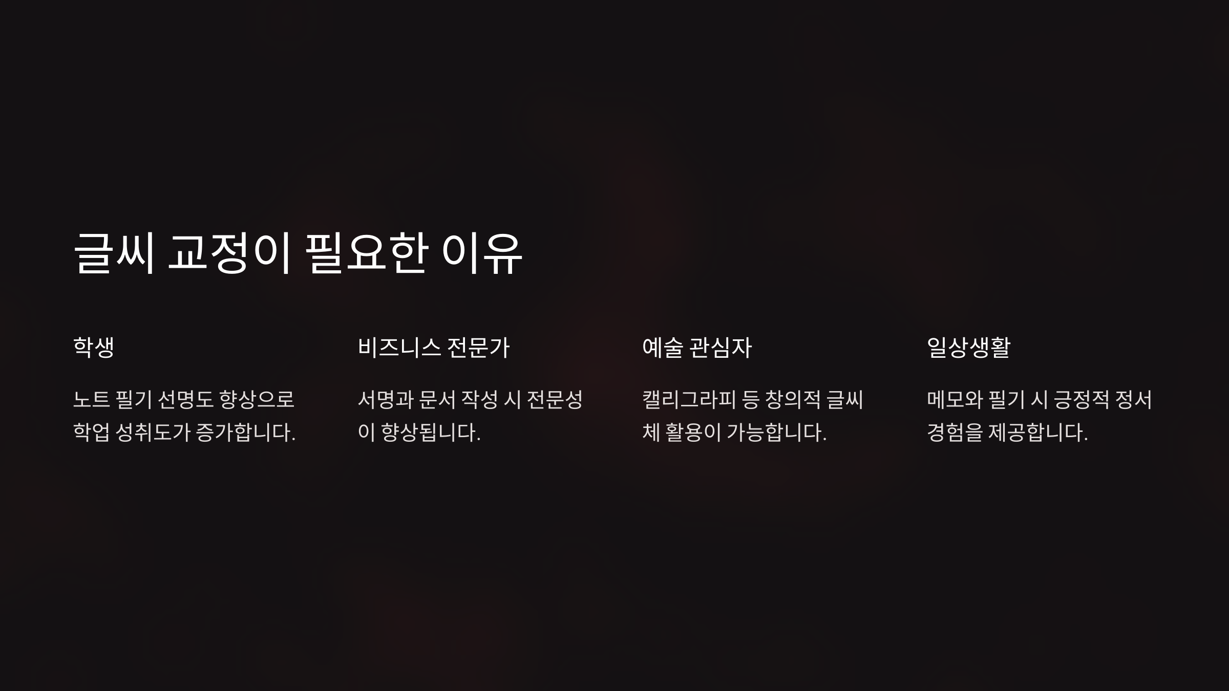글씨 교정의 다양한 효과 🖋 글씨 교정 관련 요소 비교