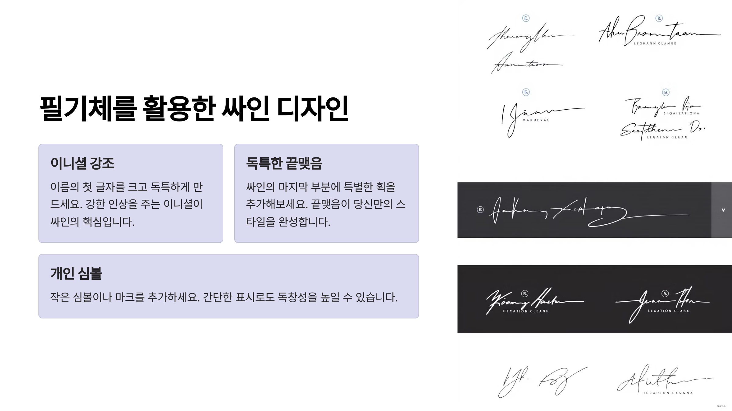 필기체 싸인을 만들 때 이 3가지 팁만 기억하면 더욱 세련된 스타일을 연출할 수 있어요! 🤩