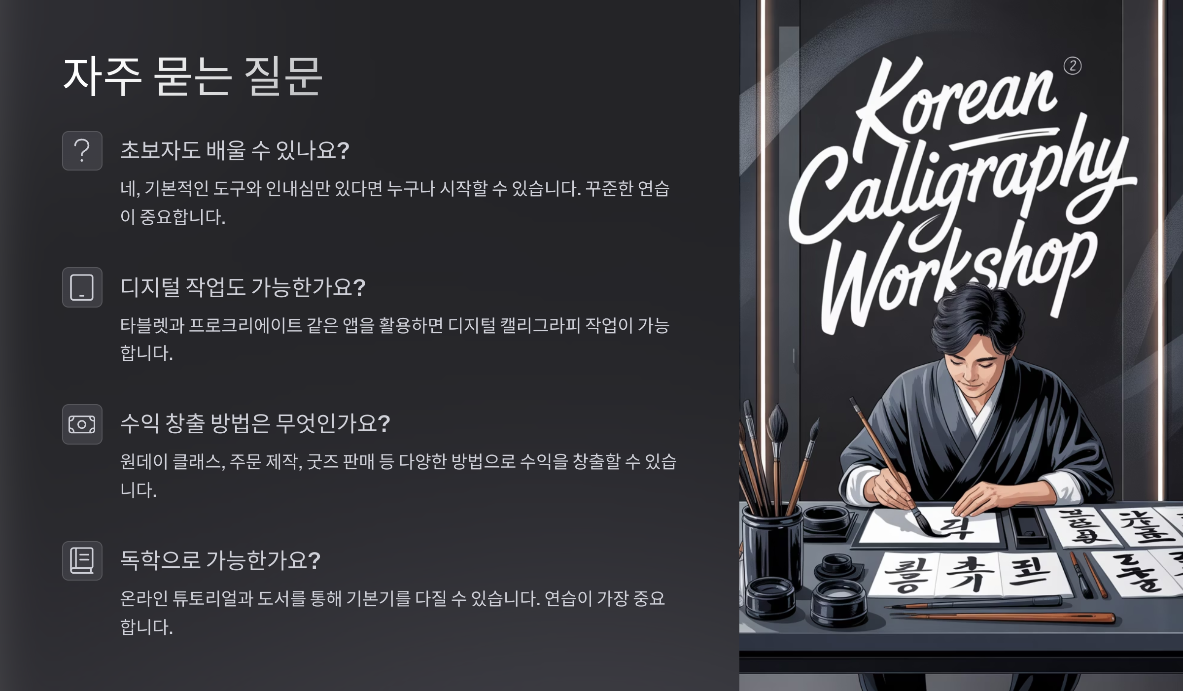 Q6. 캘리그라피로 수익을 낼 수 있을까요?