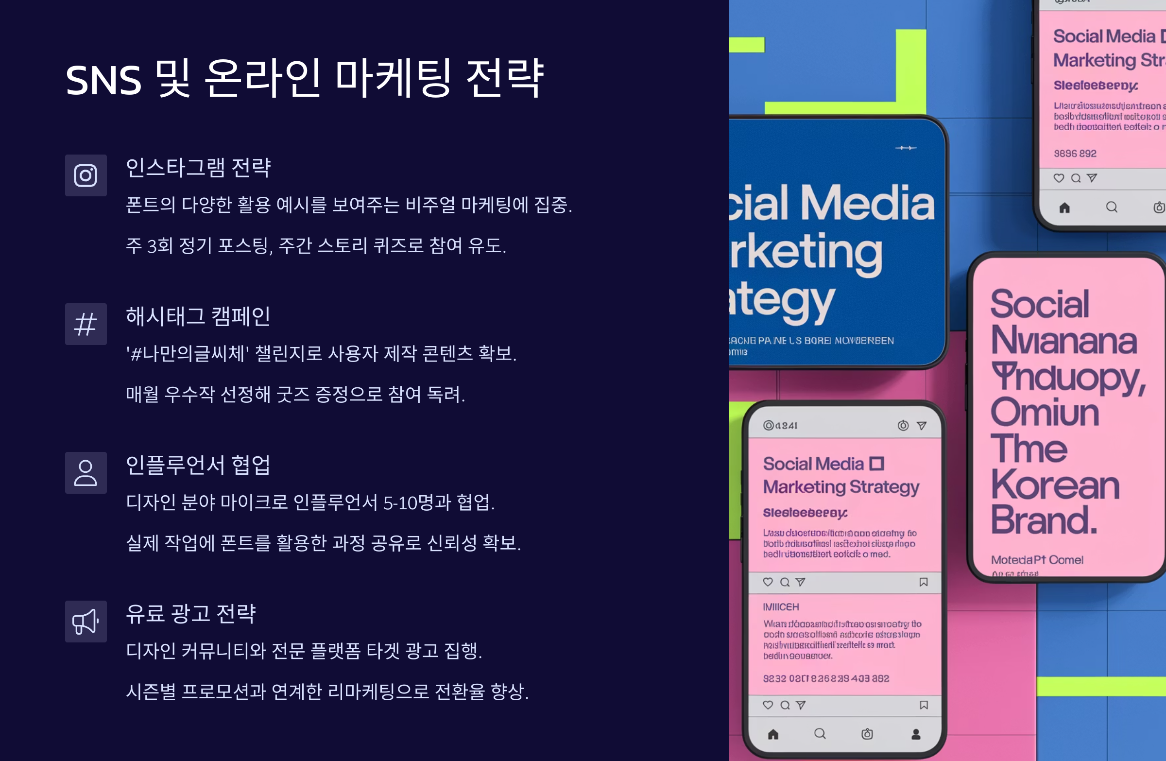 내가 만든 폰트와 굿즈, 이제는 사람들에게 보여줘야 해요! 지금은 ‘제품이 아무리 좋아도, 알려야 팔리는 시대’니까요. 그래서 SNS 마케팅은 폰트 브랜드에게 필수예요. 📱