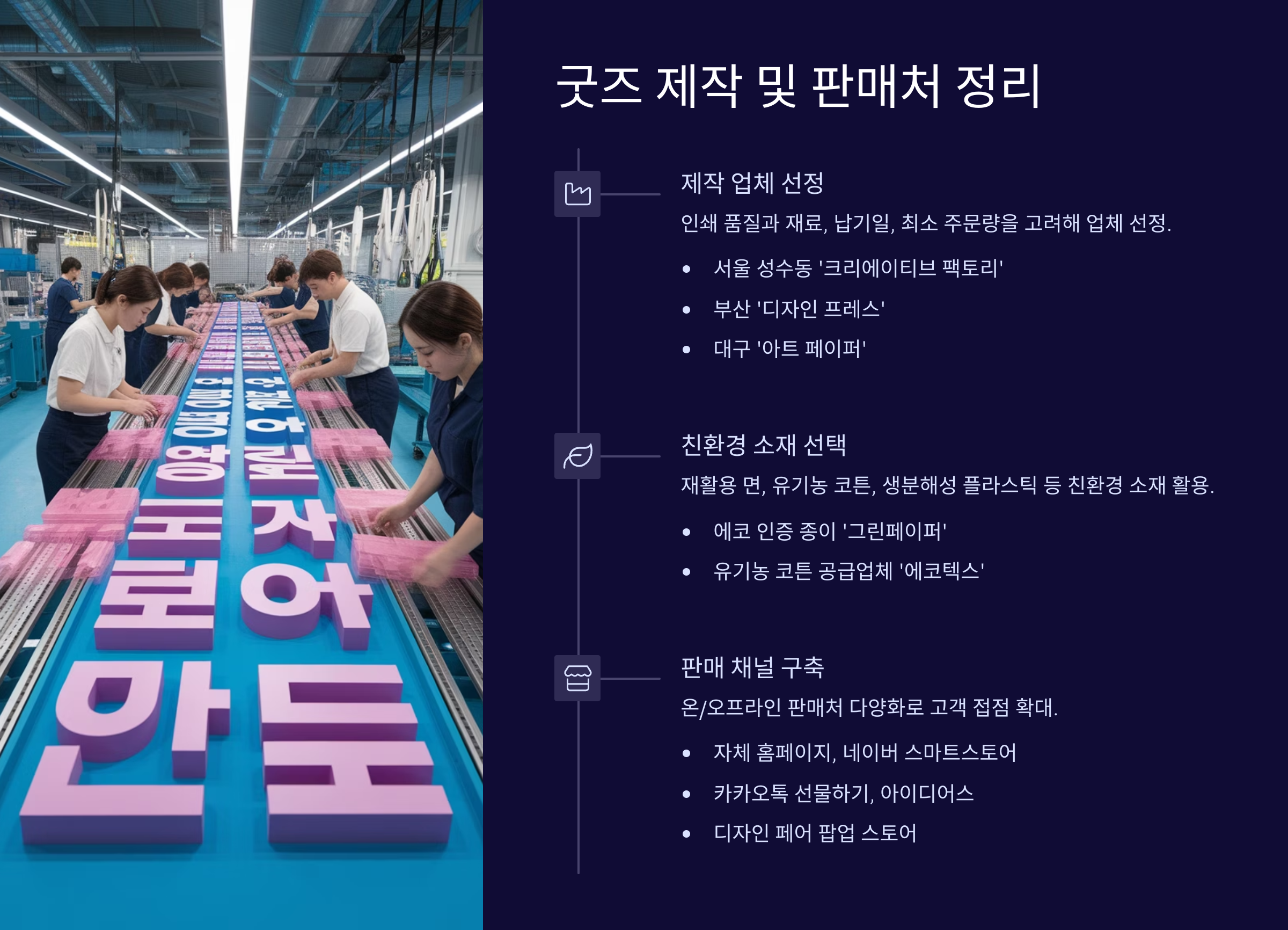 👉 다음은 "굿즈 제작 및 판매처 정리"예요. 어디서 만들고, 어떻게 파는 게 좋을지 플랫폼별로 소개해드릴게요!
