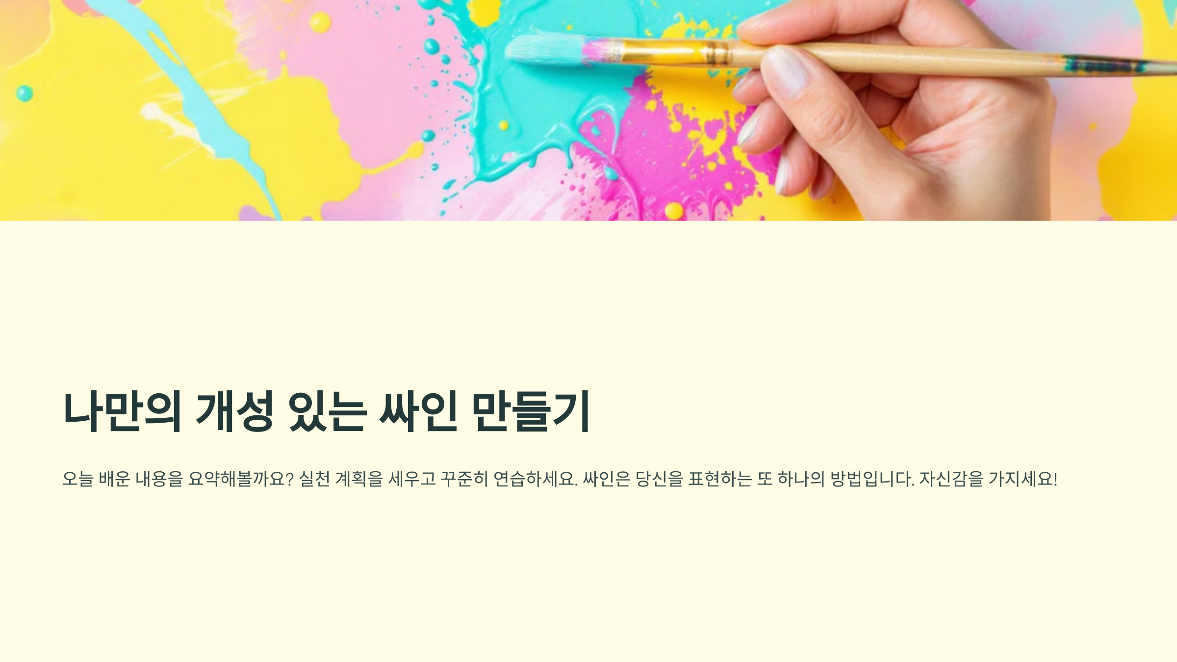 지금까지 초보자도 쉽게 따라 할 수 있는 싸인 만드는 법을 알아봤어요! 이제 직접 연습하면서 나만의 멋진 싸인을 완성해보세요. ✨