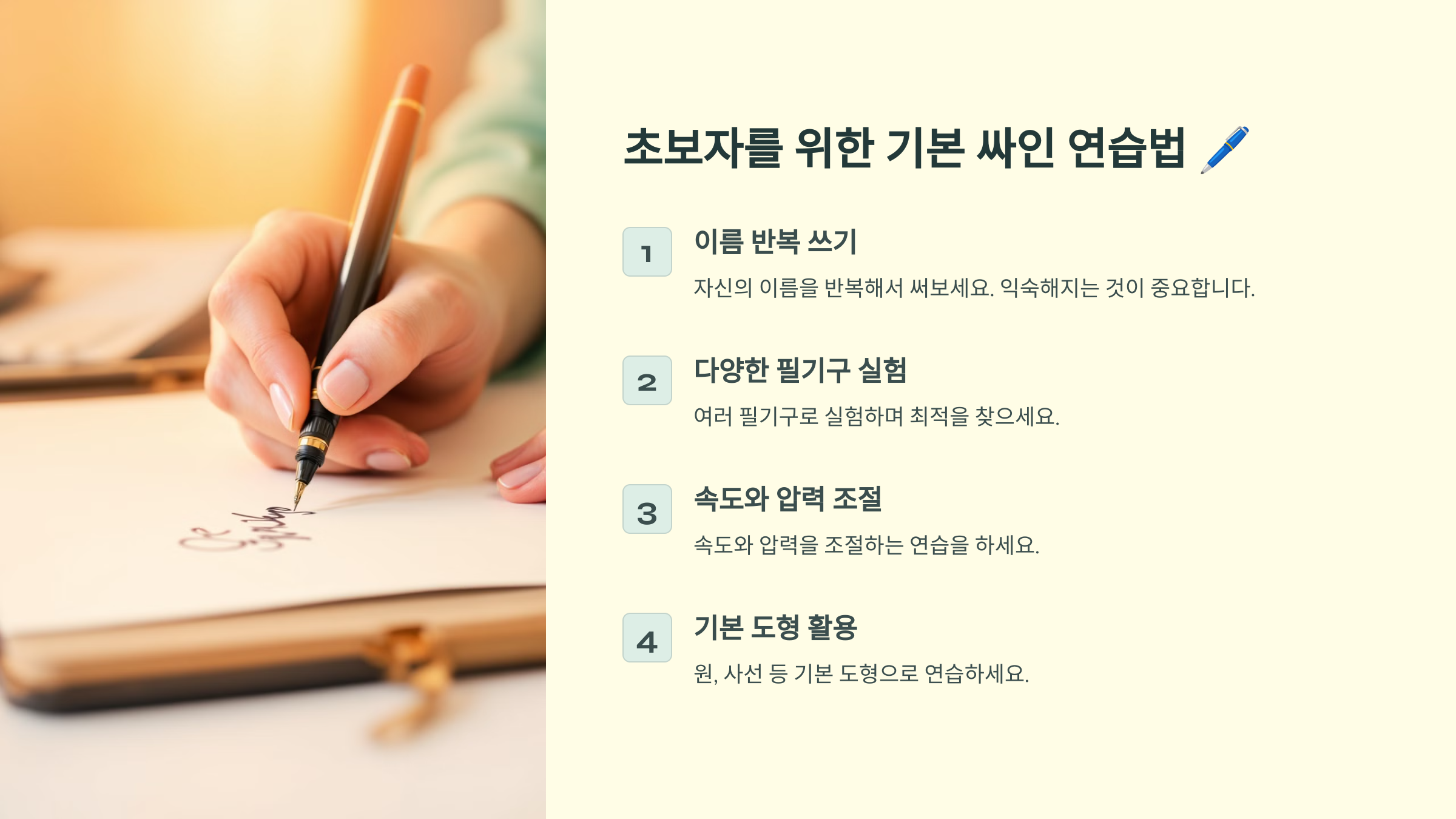 🔹 빠르게 써보면서 손에 익히기 처음엔 천천히 연습하되, 나중에는 실전처럼 빠르게 싸인을 해보는 것이 좋아요. ✨