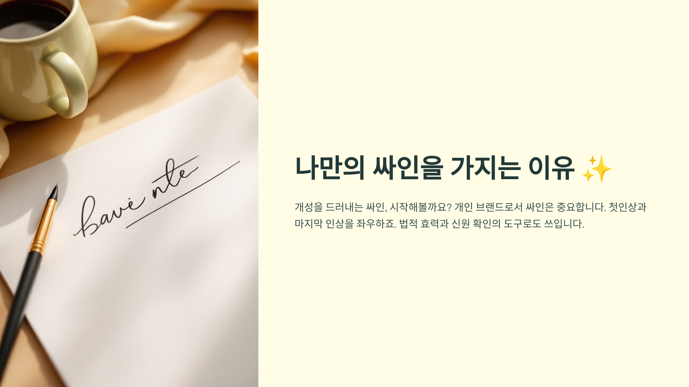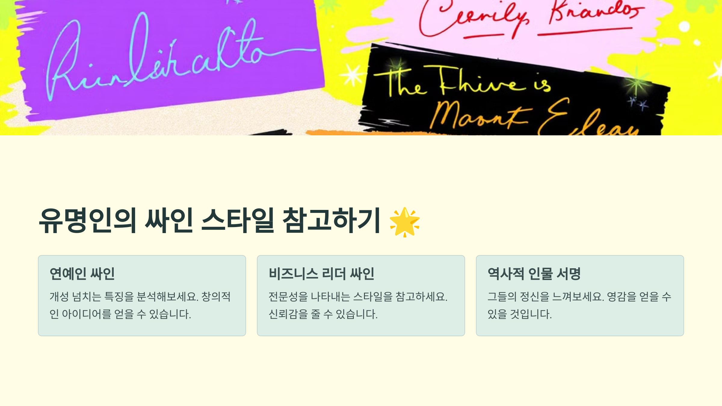 싸인은 단순한 서명이 아니라 나를 표현하는 특별한 상징이 될 수 있어요. 내가 만든 싸인이 하나의 브랜드가 될 수도 있죠! 🎨