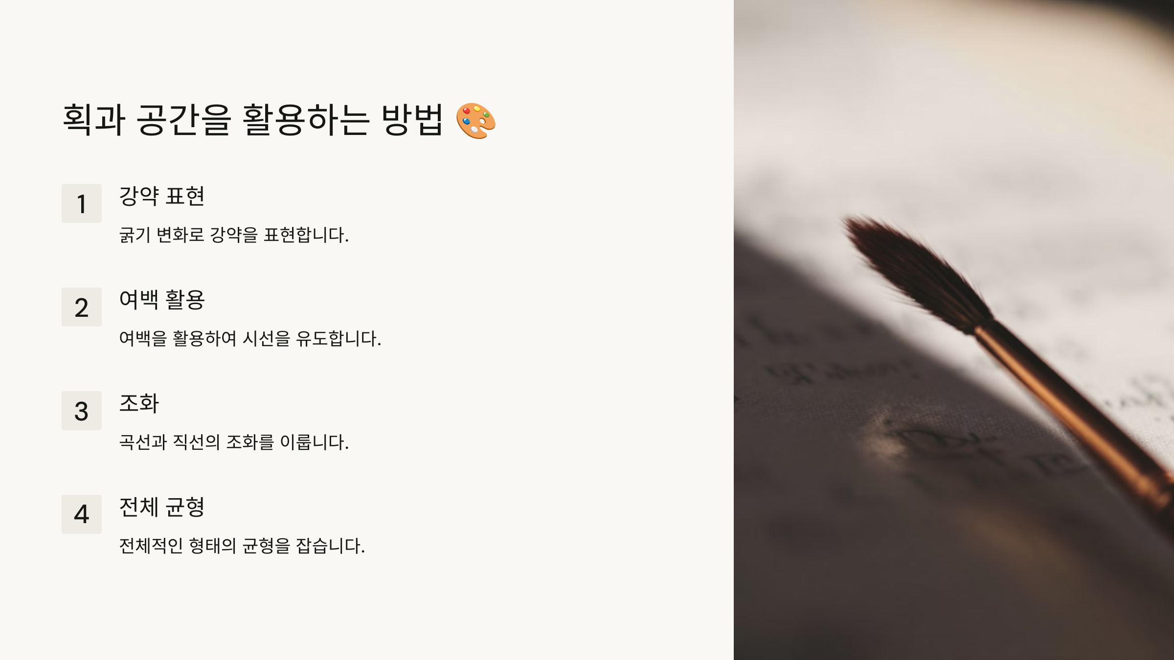 이제 획과 공간을 활용하는 방법을 살펴볼까요? 🎨