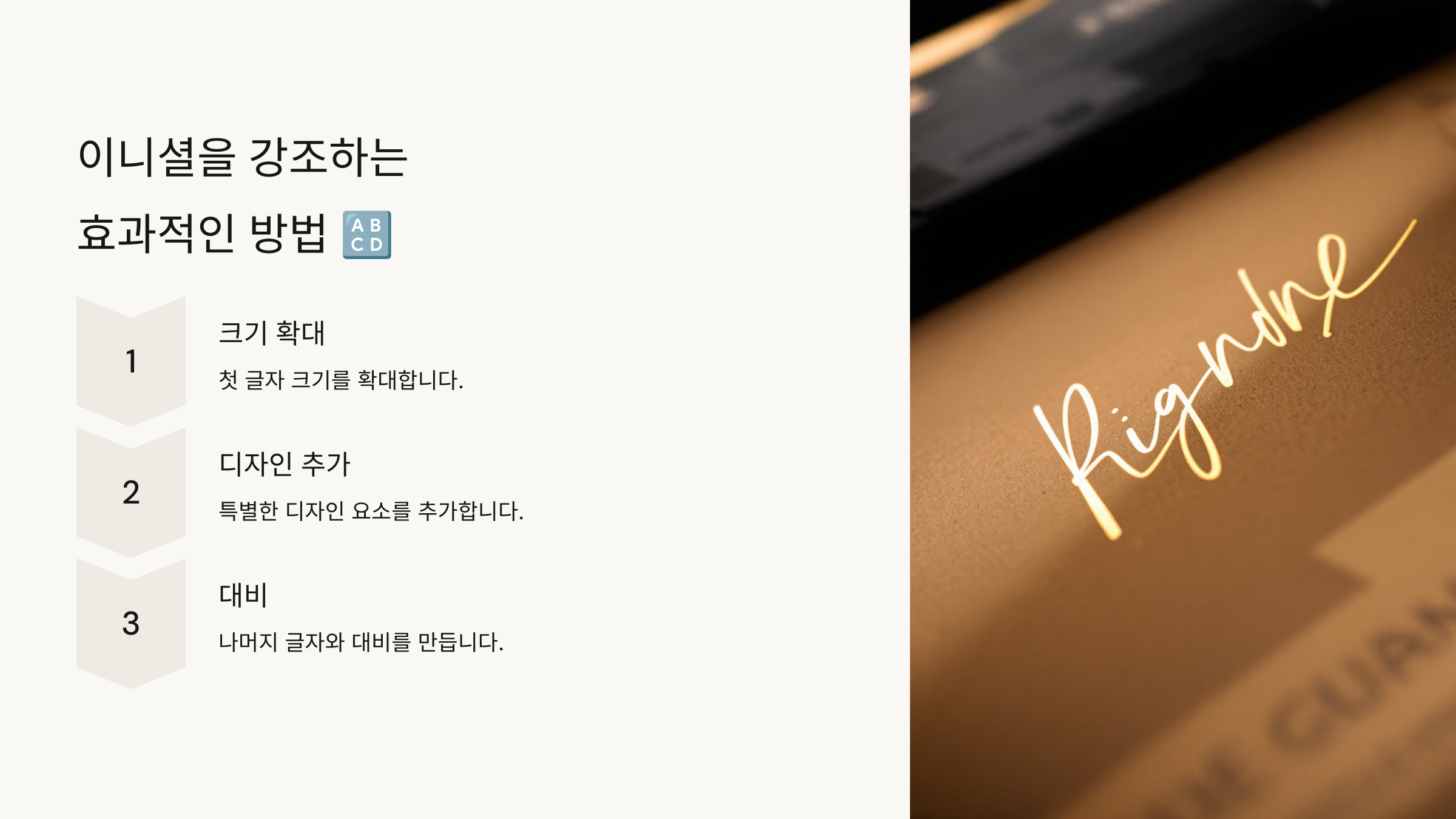 이제 이니셜을 강조하는 효과적인 방법을 살펴볼까요? 🔠