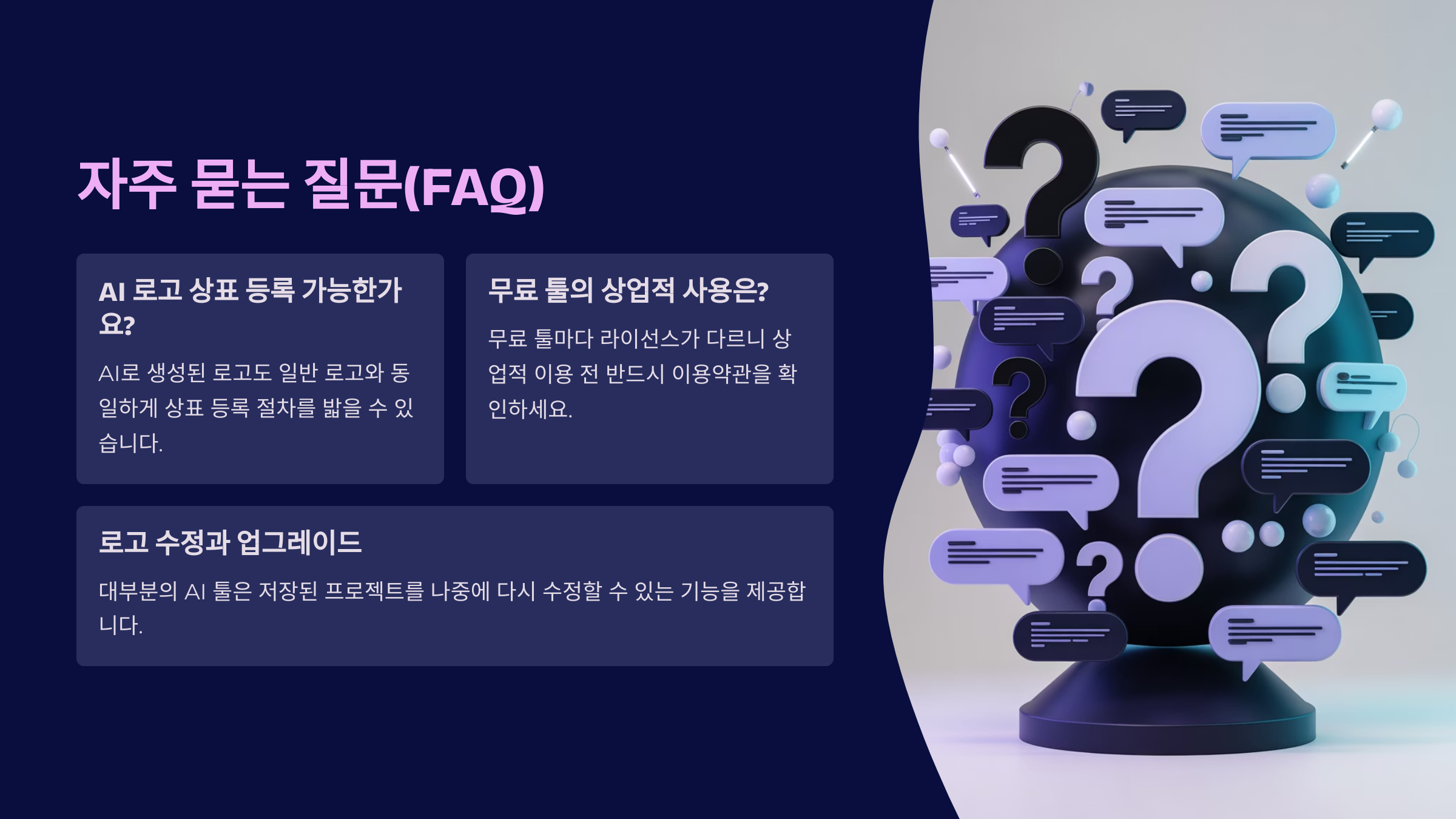 이제 마지막으로, 많은 분들이 궁금해하는 AI 로고툴에 대한 자주 묻는 질문을 FAQ 형식으로 정리해볼게요!