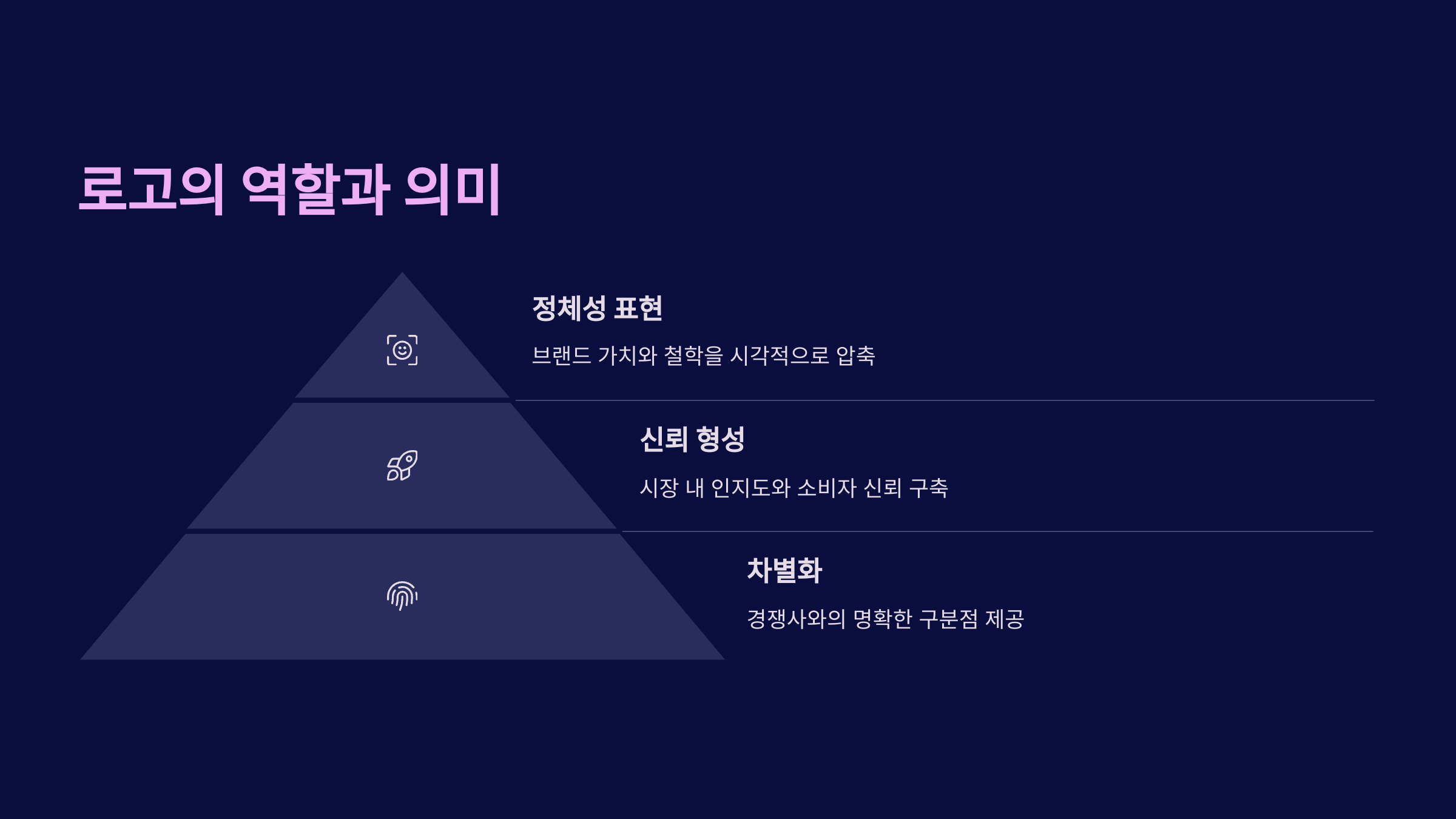 내가 생각했을 때, 로고를 통해 브랜드 철학과 느낌을 효과적으로 표현할 수 있다면 마케팅의 절반은 성공한 셈이에요. 사람들이 "이 로고 어디서 많이 봤는데?"라고 말할 수 있도록 만들면, 기억에 남는 브랜드가 되는 거예요.