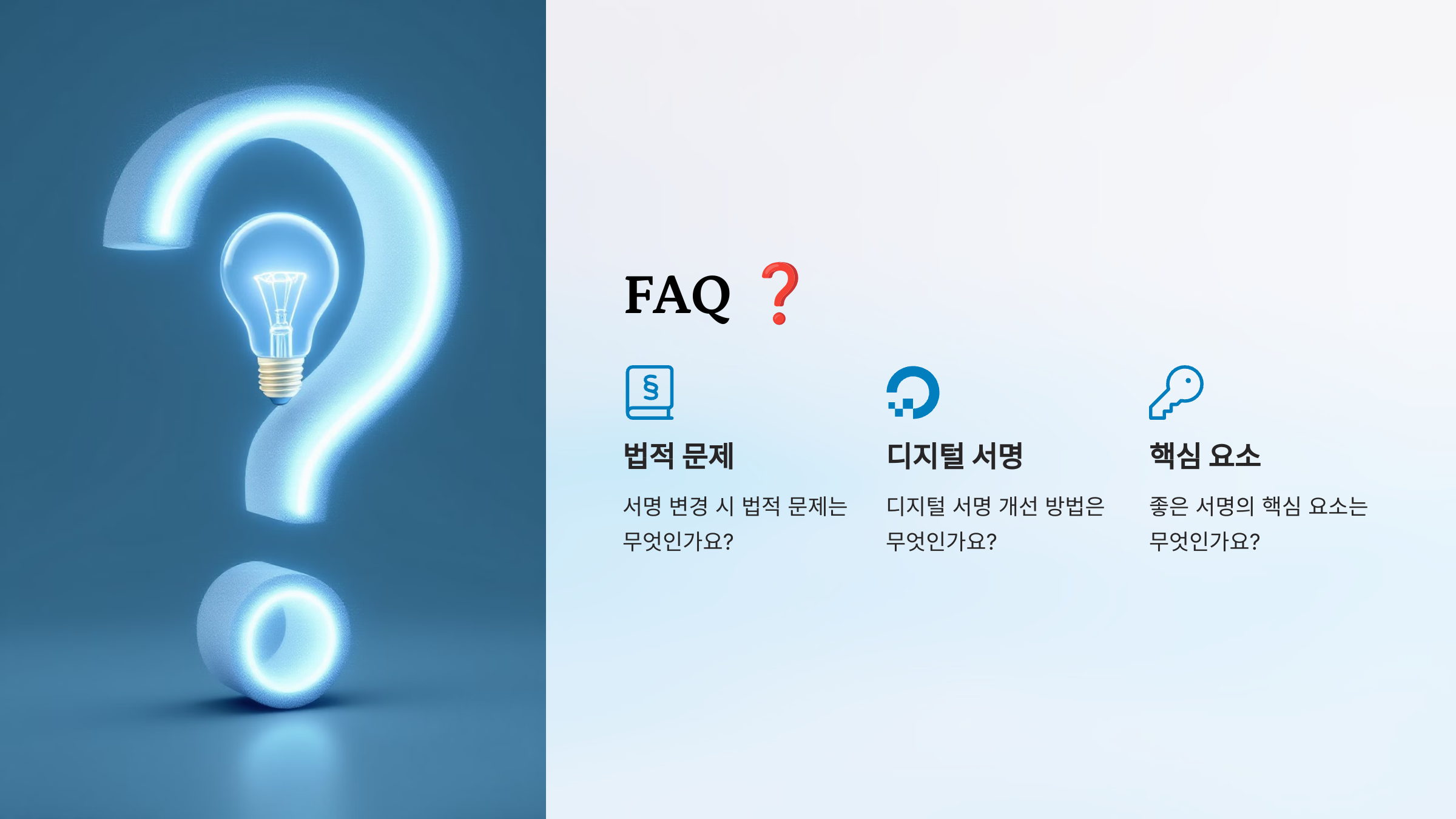이제 싸인에 대한 궁금증을 해결할 시간! FAQ에서 자주 묻는 질문을 정리해볼까요? ❓