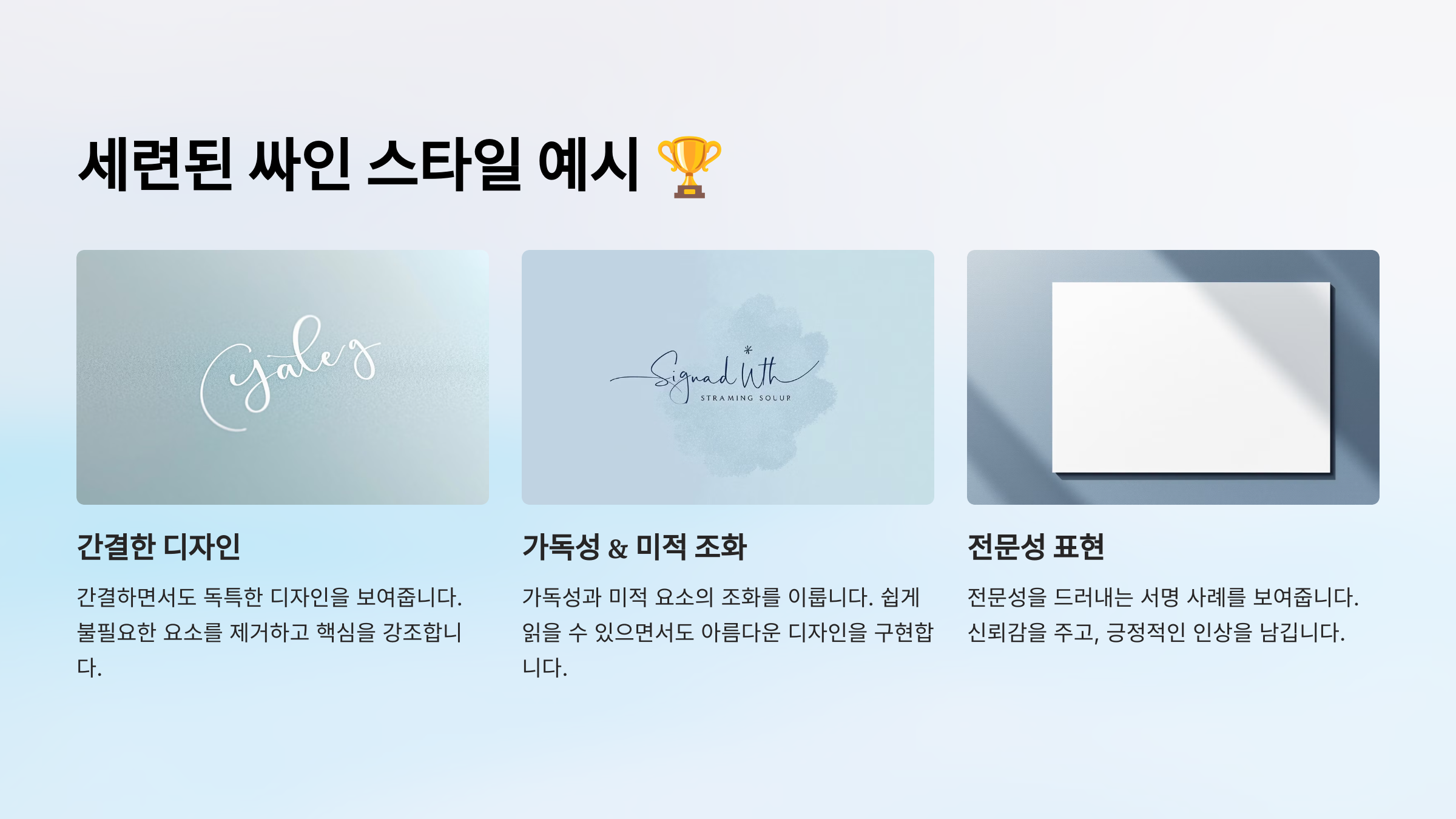 이제 세련된 싸인 스타일 예시를 살펴볼까요? 🏆