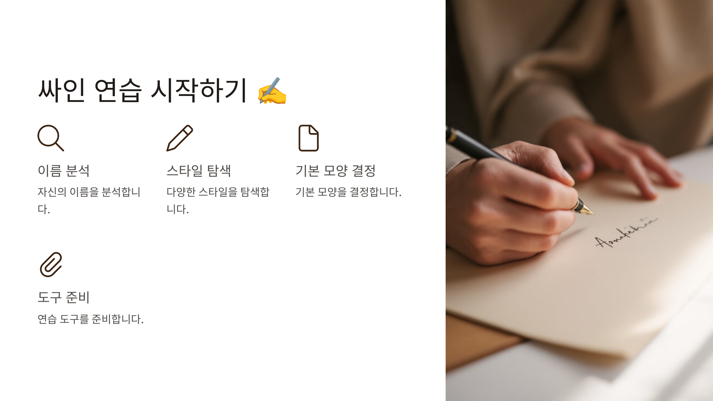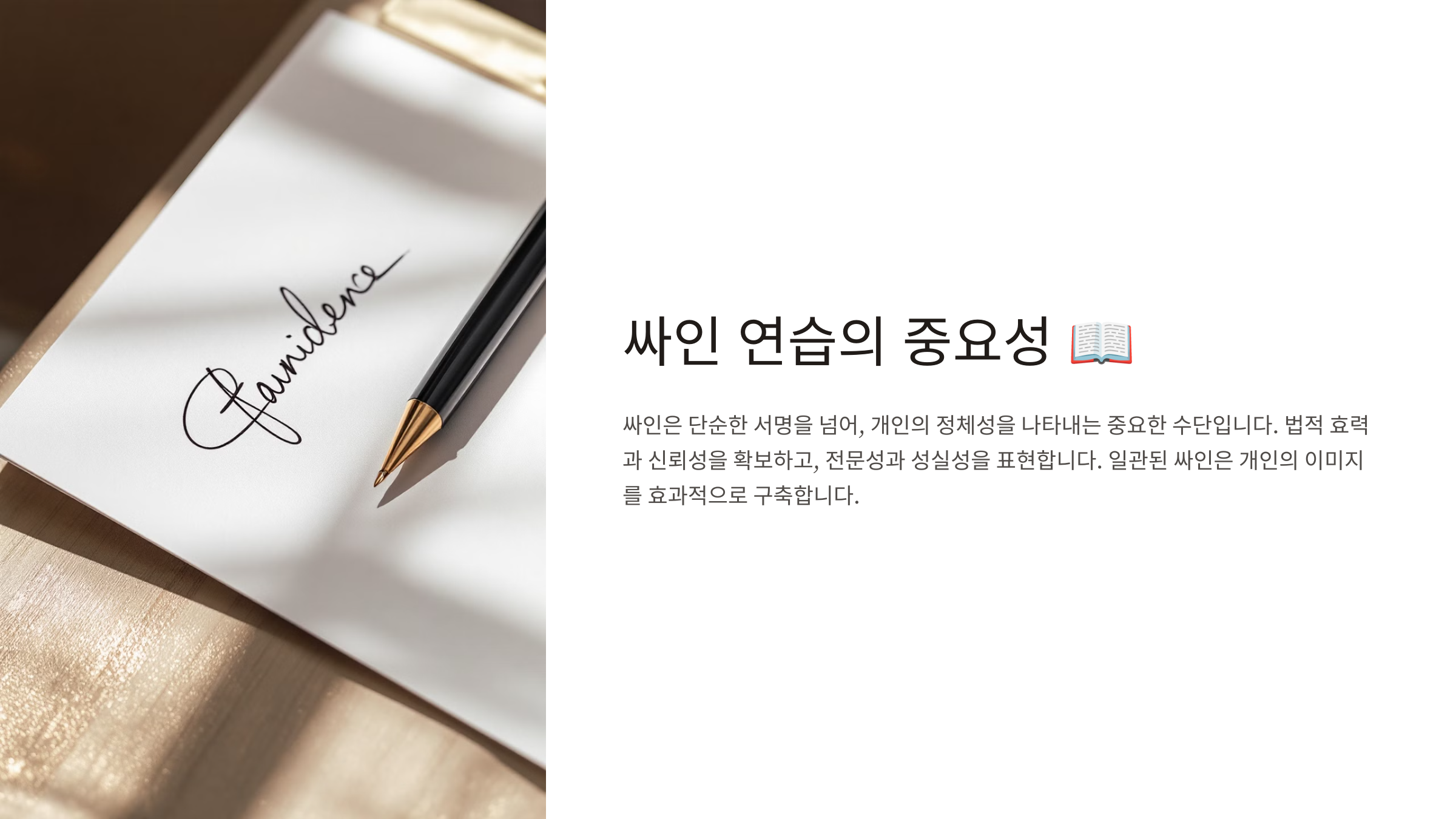 내가 생각했을 때, 싸인 연습의 핵심은 일관된 스타일 유지와 자연스러운 흐름이에요. 이제 손에 익을 때까지 쉽게 따라 할 수 있는 싸인 연습법을 배워볼까요? 🚀