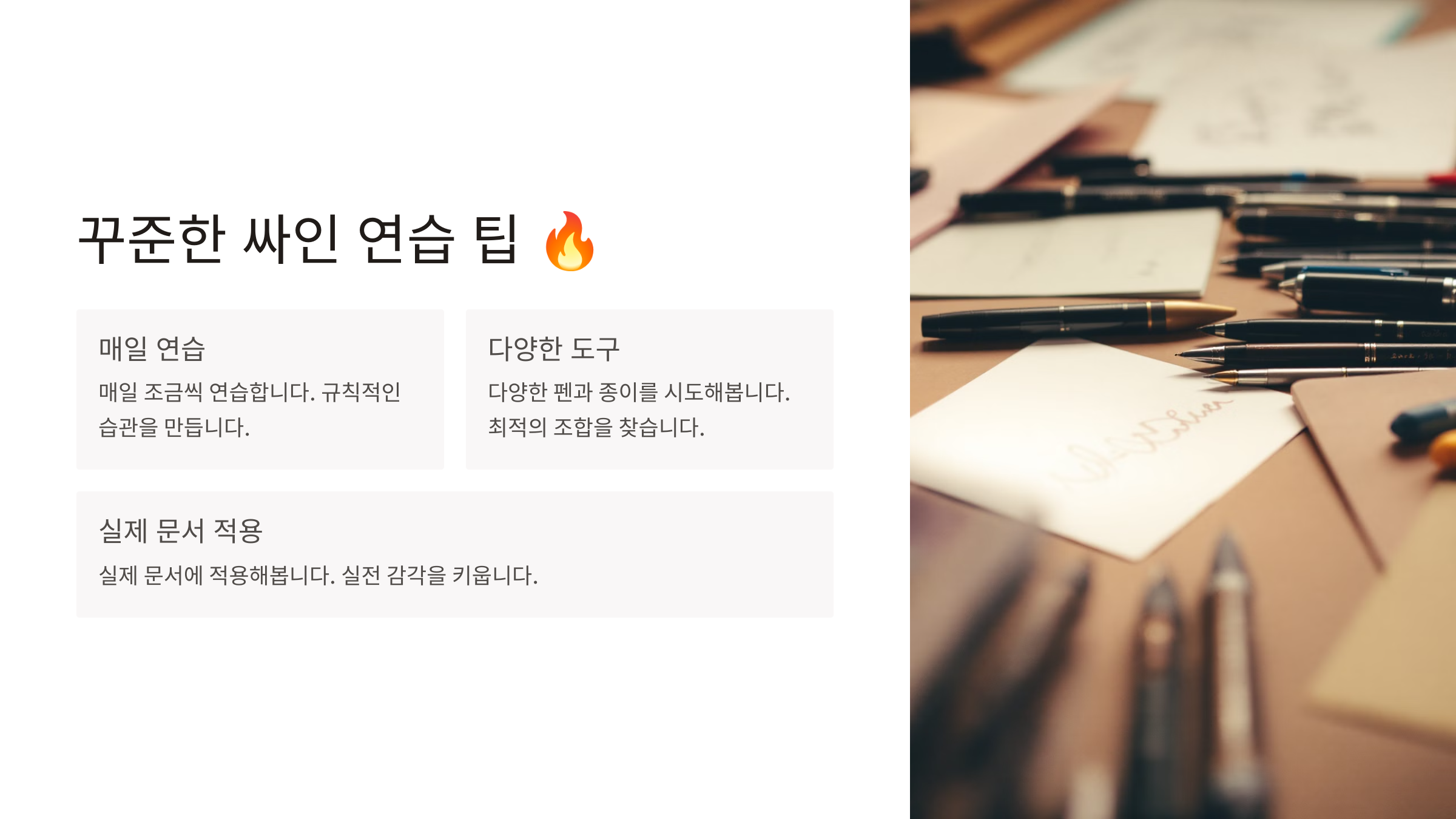 🔹 꾸준한 싸인 연습을 위한 5가지 팁