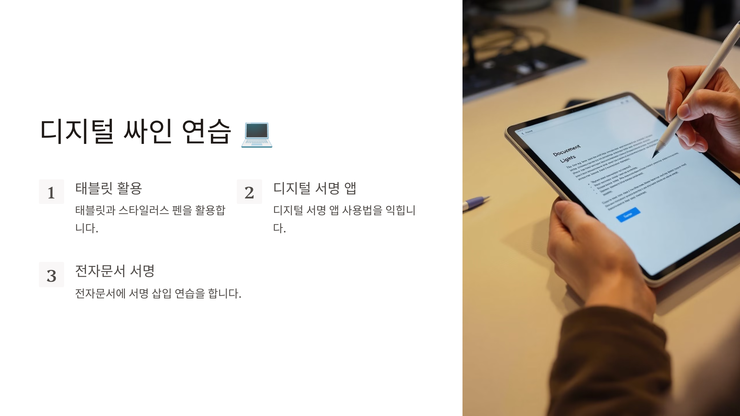 ✔ 종이뿐만 아니라 디지털 서명도 함께 연습하기