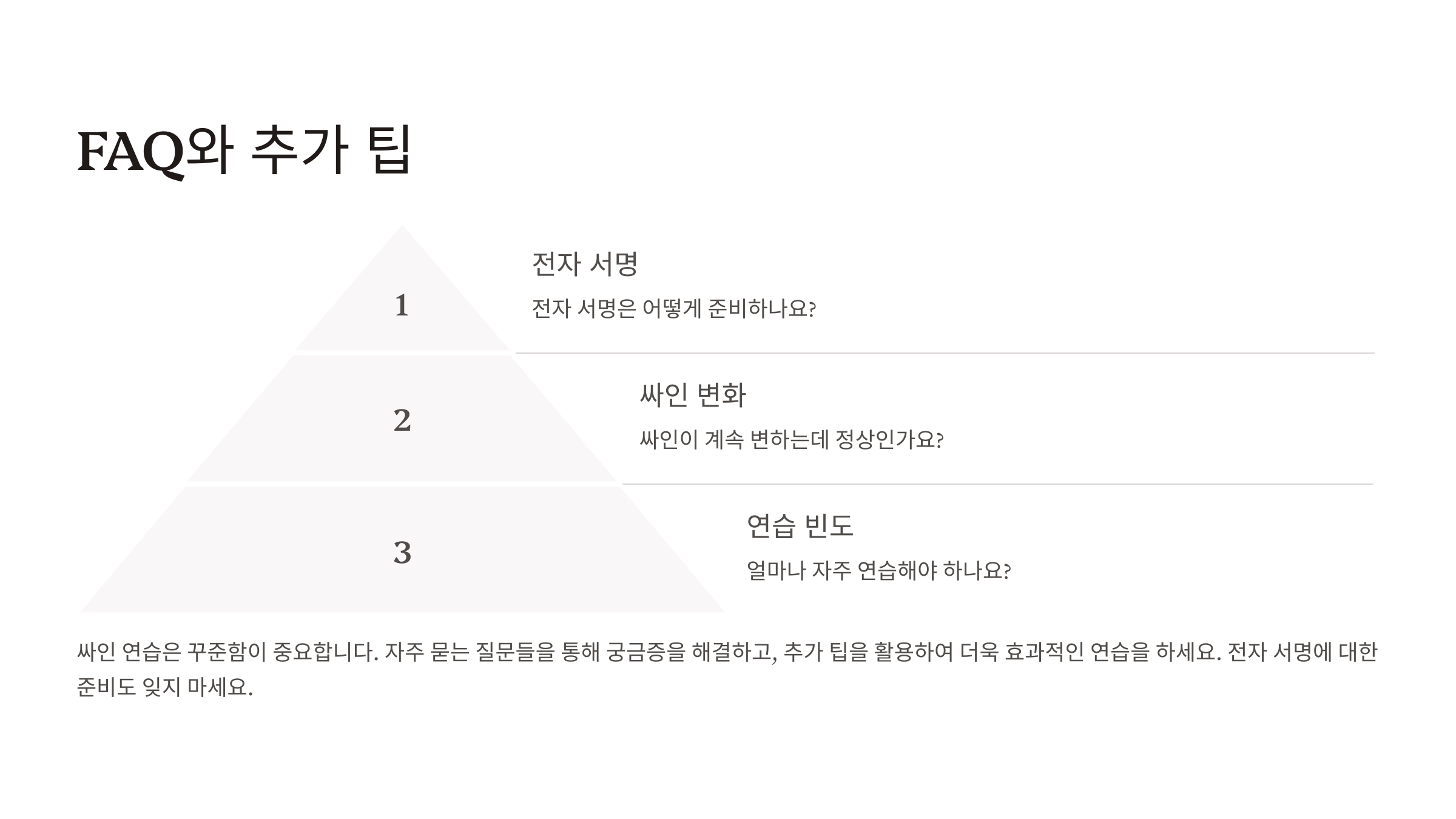 이제 싸인 연습의 모든 것을 알았어요! 마지막으로 싸인 연습과 관련된 FAQ를 살펴볼까요? ❓