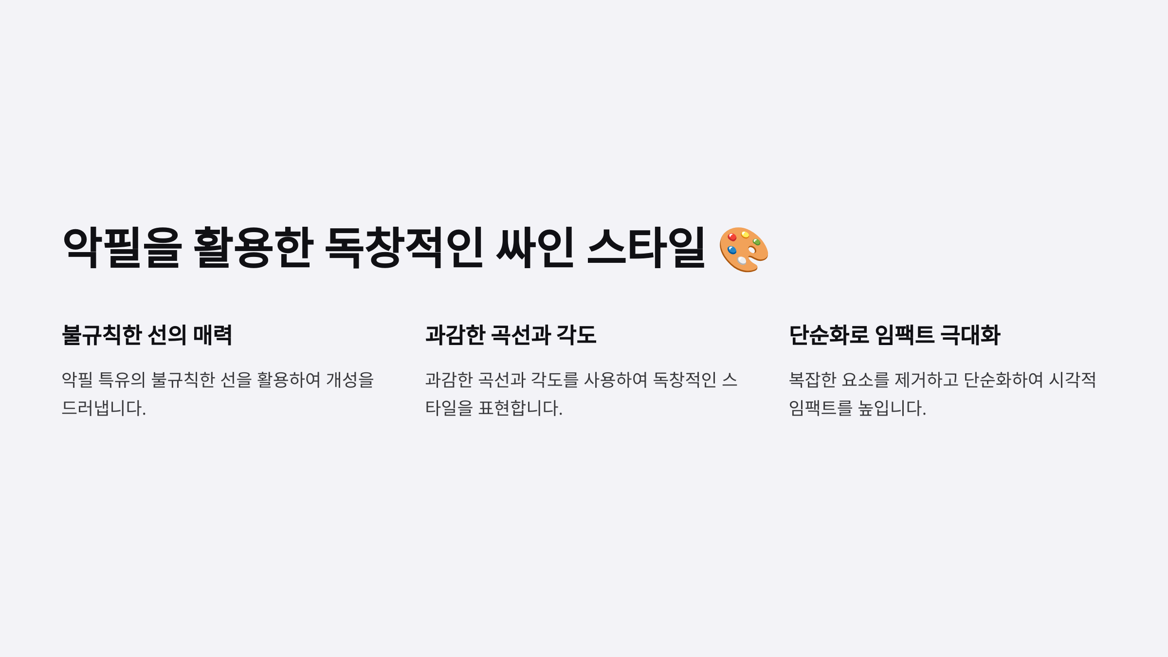 ✔ 악필의 흐름을 활용해 유니크한 디자인을 만들 수 있음