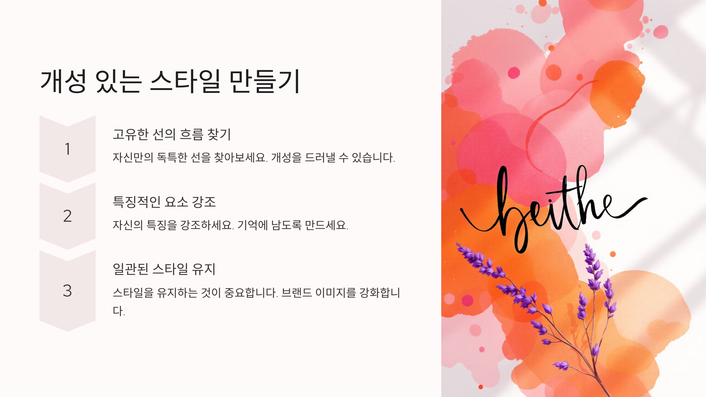 싸인은 나만의 개성을 담아야 해요. 너무 흔한 디자인보다는, 조금만 변형해도 확실한 차별점이 생기죠! 그럼 개성을 살리는 요소들을 살펴볼까요? 🤩