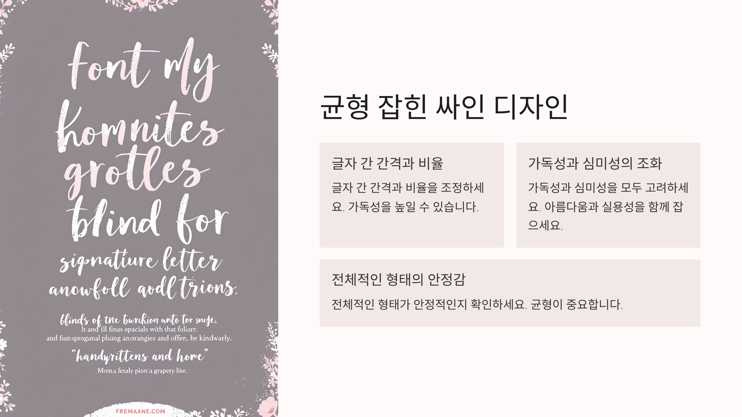 이렇게 개성을 살린 싸인을 만들면 더 멋져 보이겠죠? 😎 이제 싸인을 디자인할 때 균형을 맞추는 방법을 알아볼까요?