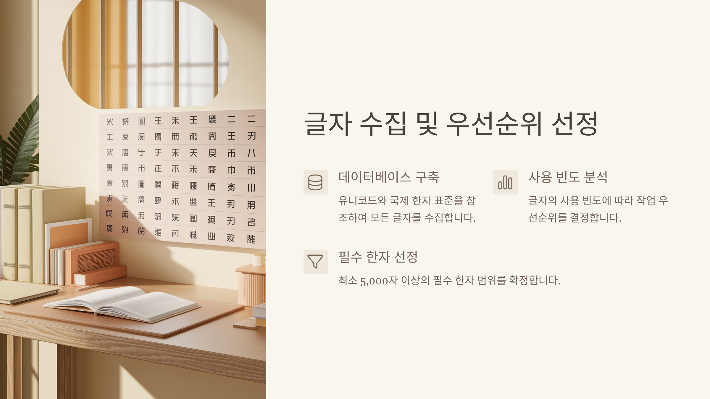 한자 폰트 제작에서 가장 먼저 해야 할 일은 어떤 글자를 만들 것인지 정리하는 작업이에요. 한자 수는 무려 7만 자 이상이지만, 실생활에서 자주 쓰이는 글자는 그중 일부에 불과하거든요. 그래서 우선순위를 똑똑하게 정리하는 게 효율을 크게 높여줘요. 🧠