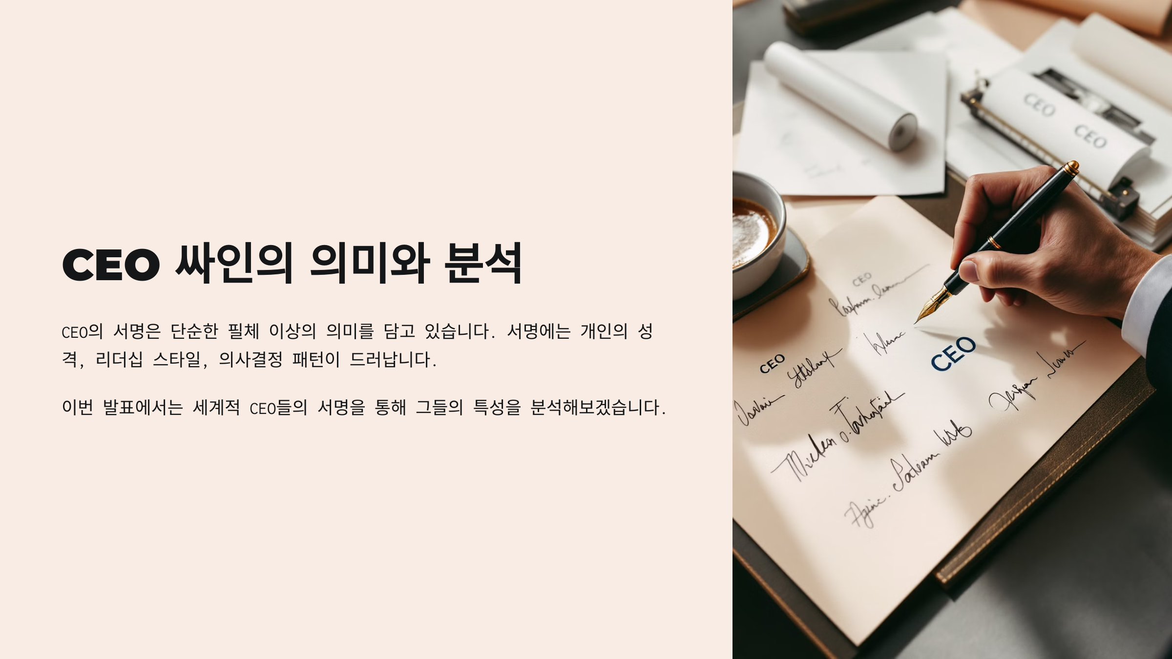 CEO들의 싸인은 단순한 서명이 아니라 그들의 리더십, 브랜드, 비전을 반영하는 요소예요. 싸인의 스타일만 봐도 그 사람의 성격과 경영 철학을 어느 정도 유추할 수 있어요. 🖋️