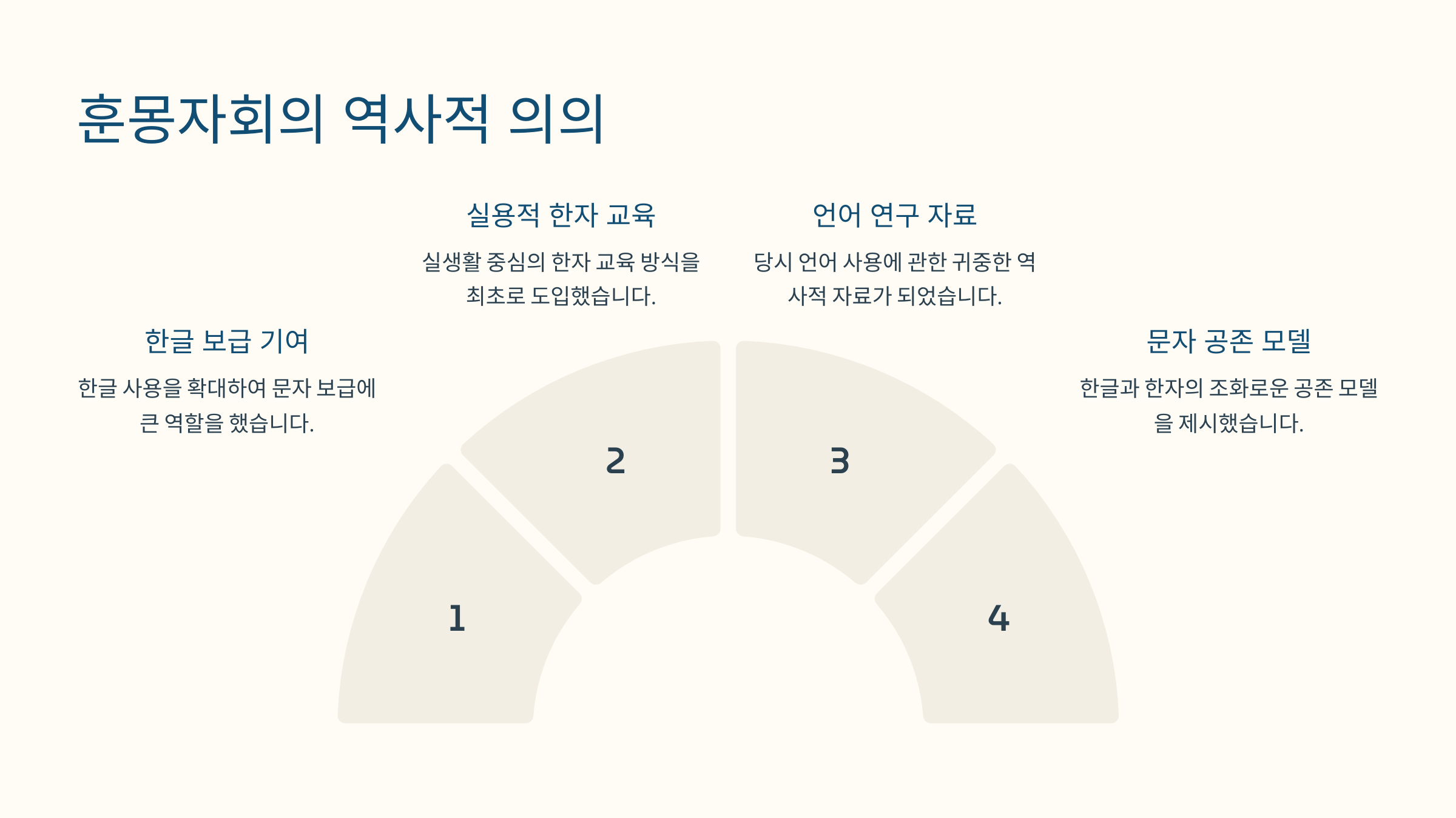 훈몽자회는 단순한 학습서가 아니라 조선 시대 문자 교육과 문화를 변화시킨 중요한 책이에요. 특히 한글이 본격적으로 교육에 활용되는 계기를 마련했고, 이후 한글을 기반으로 한 다양한 서적들이 등장하는 데 영향을 줬어요.
