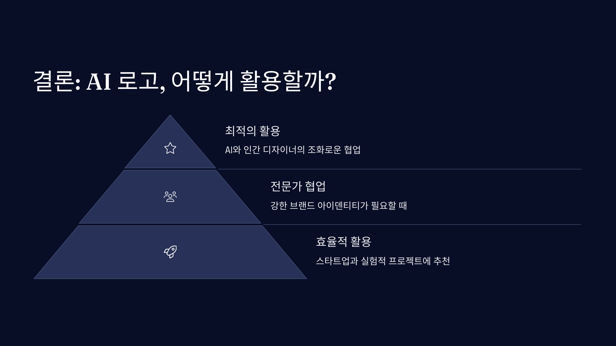 예를 들어, 초기 창업 단계에서 브랜드 이미지를 빠르게 구축하고 싶다면 AI 로고는 매우 훌륭한 솔루션이에요. MVP 단계에서는 브랜드의 정체성보다도 실행과 속도가 중요하니까요.
