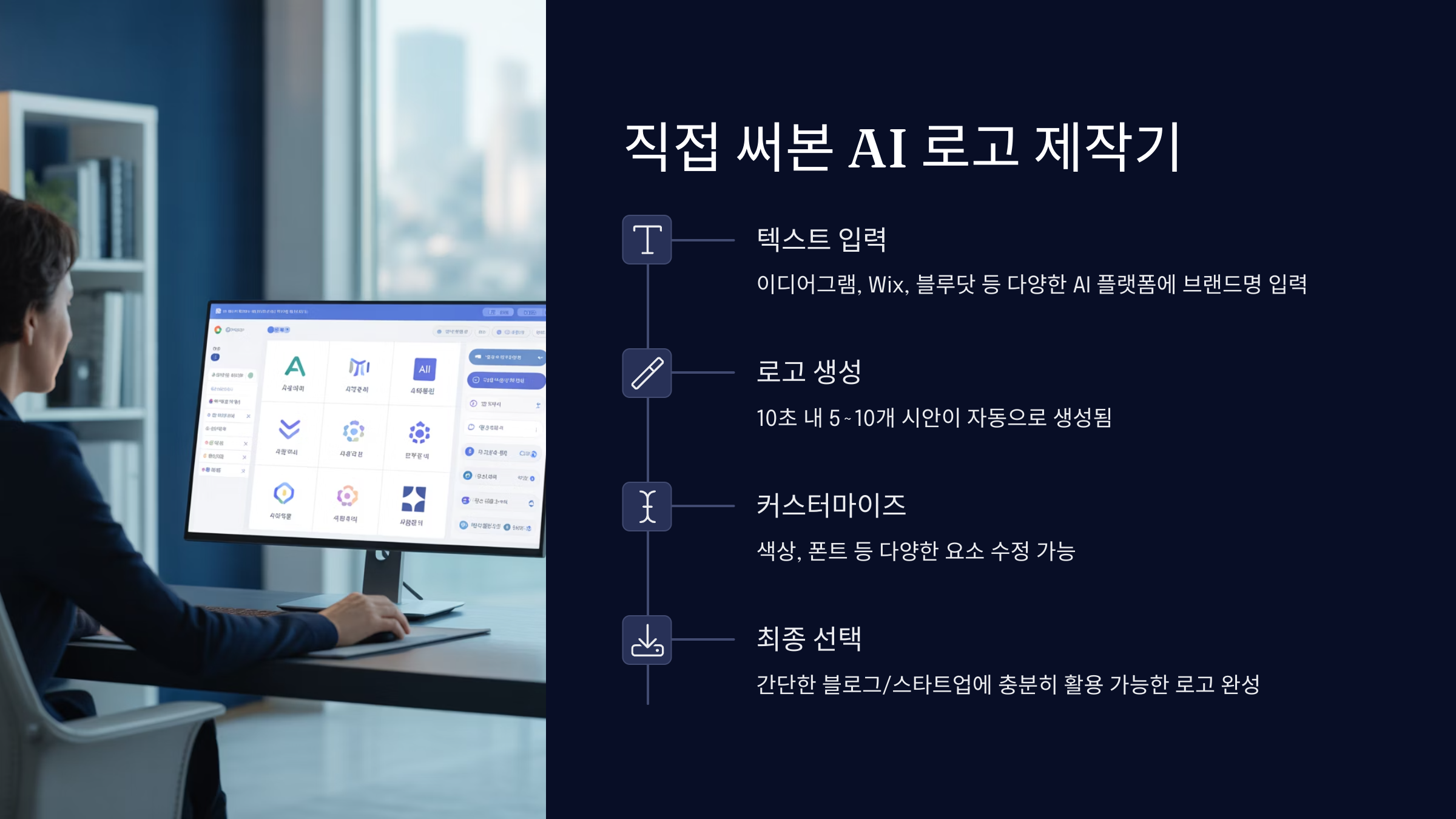 과거에는 로고를 만들려면 디자이너에게 수십만 원을 주고 몇 주 동안 기다려야 했어요. 그런데 지금은 AI 덕분에 클릭 몇 번으로 다양한 시안까지 받아볼 수 있답니다. 정말 세상이 달라졌다고 느껴질 정도예요.